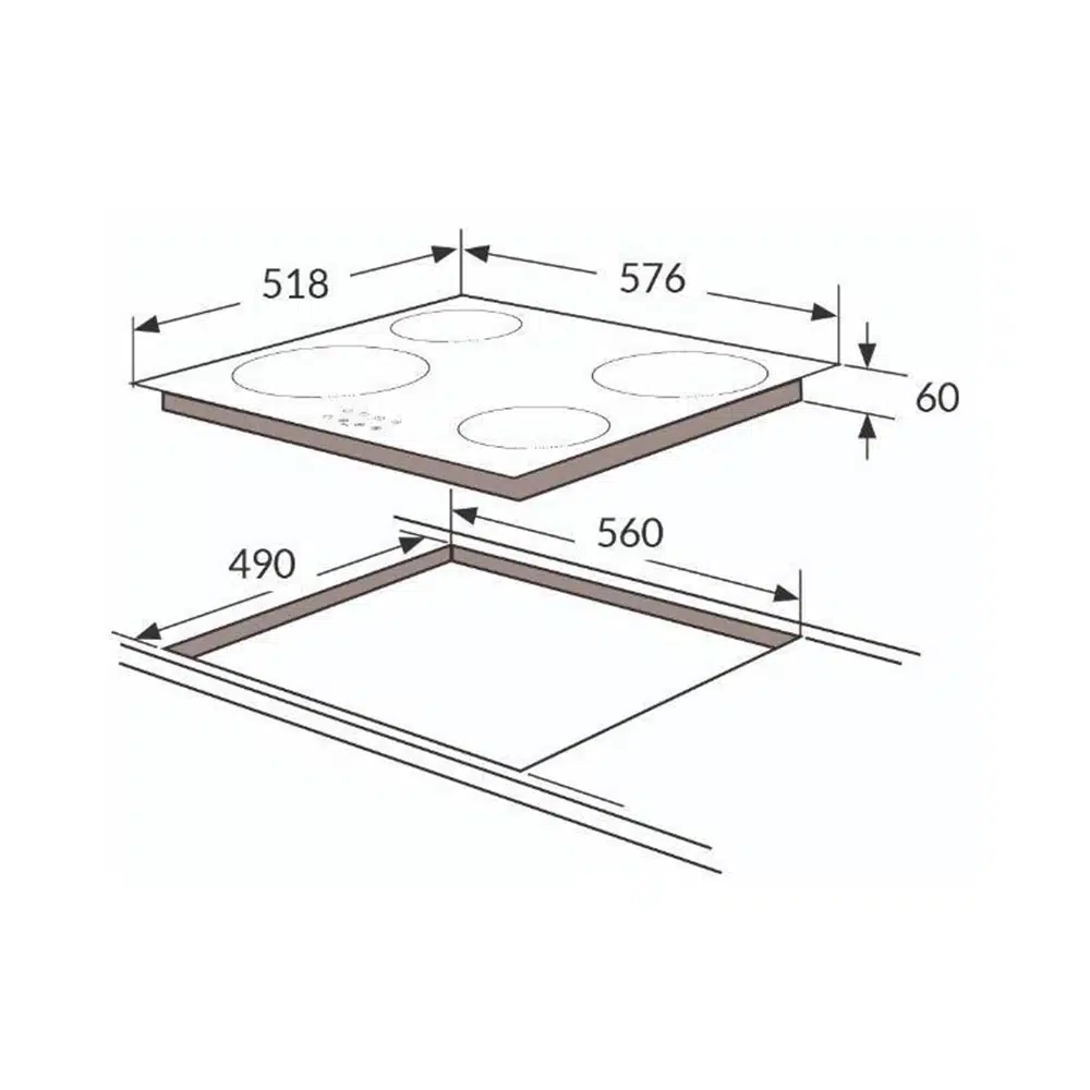 - 4 مناطق طهي سيراميك لمرونة أكبر في الاستخدام.