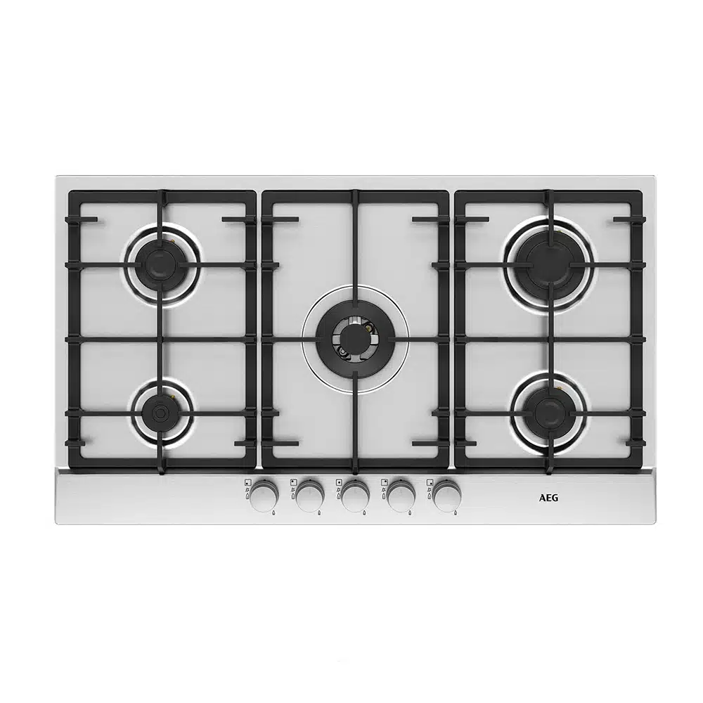 سطح غاز من ايه اي جي 90 سم,مدمج (بلت ان) مع 5 شعلة ، استيل.