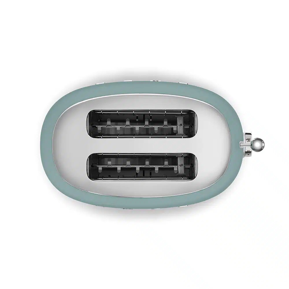 رفوف مركزة ذاتياً في الأجزاء لضمان تحميص شرائح الخبز ، مهما كان حجمها.